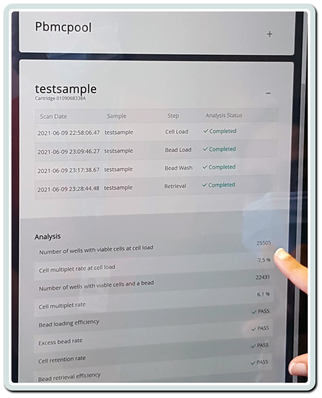 Individualized cellular analysis was not possible previously on such a large scale as can be seen in this screenshot (under the heading Analysis) of our sample of human blood cells, 22,431 cells were counted and determined as viable by the Rhapsody.