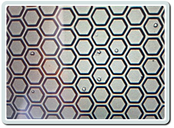 This is shown in the picture (right) where the wells are recognized by their hexagonal shape: it can be seen that several wells contain a single bead (to which is attached a single cell, that is little or not visible).